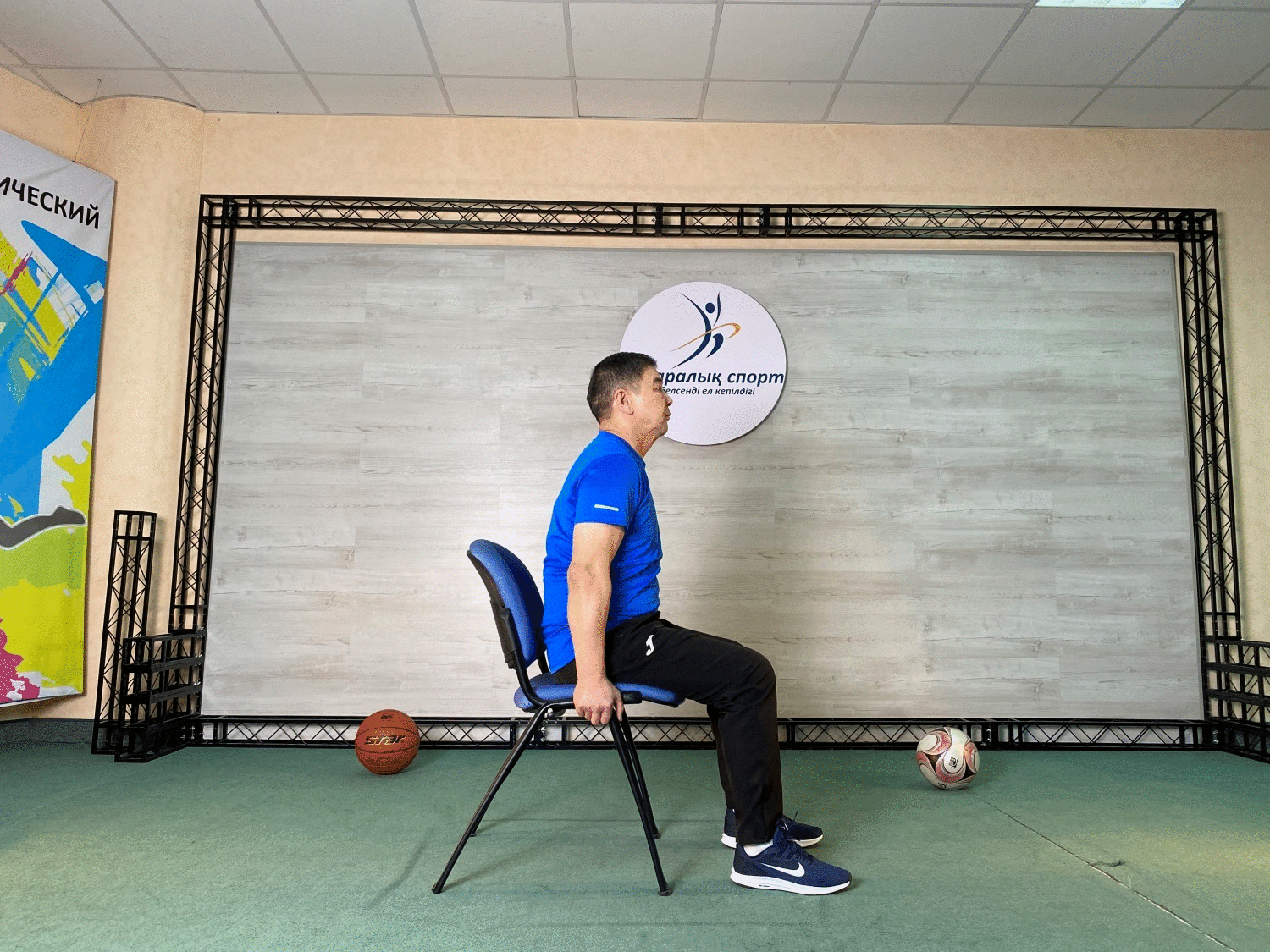 Колени сводим-разводим на счет раз- два- три- четыре. 3 повторения. Закончили упражнение – присели на стул.
